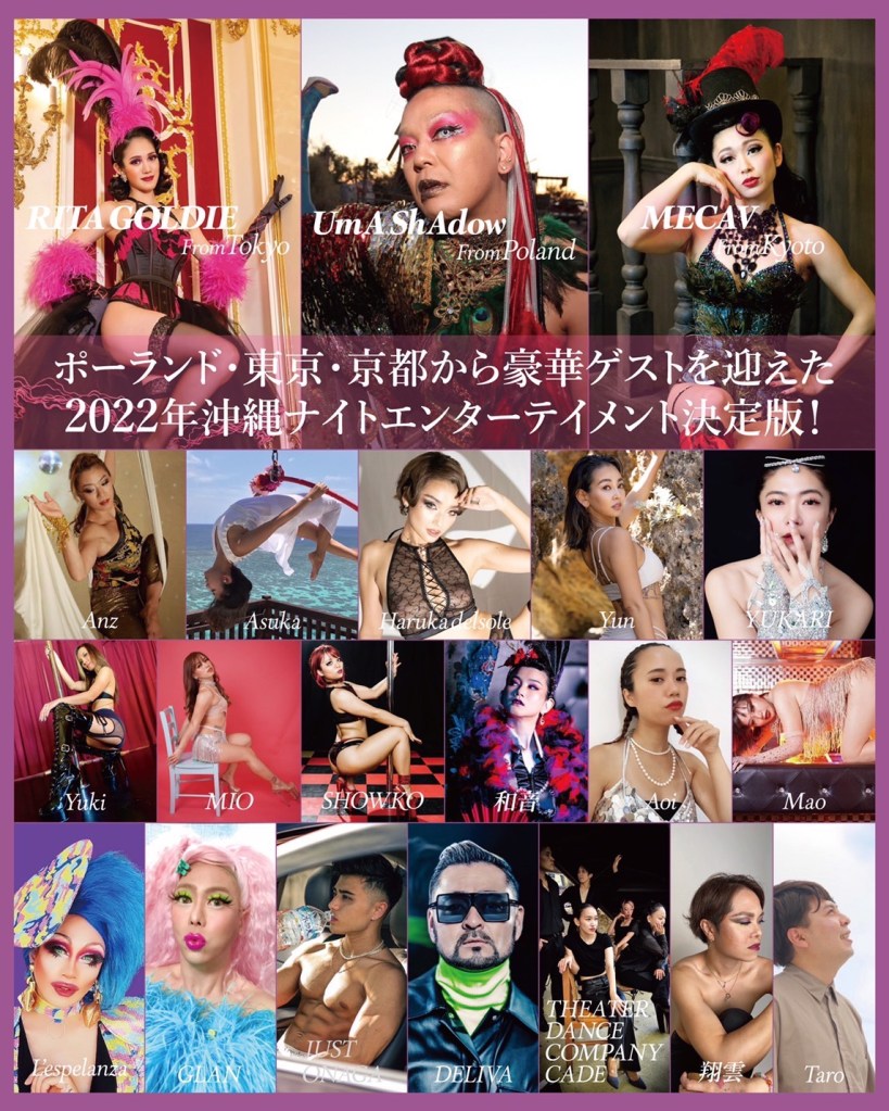 沖縄を代表するダンサー、パフォーマーが一堂に集結。Ryukyu Burlesque Festivalでしか実現しないコラボショー・チームショーなどナイトエンタメの常識を覆す豪華なラインナップ!
